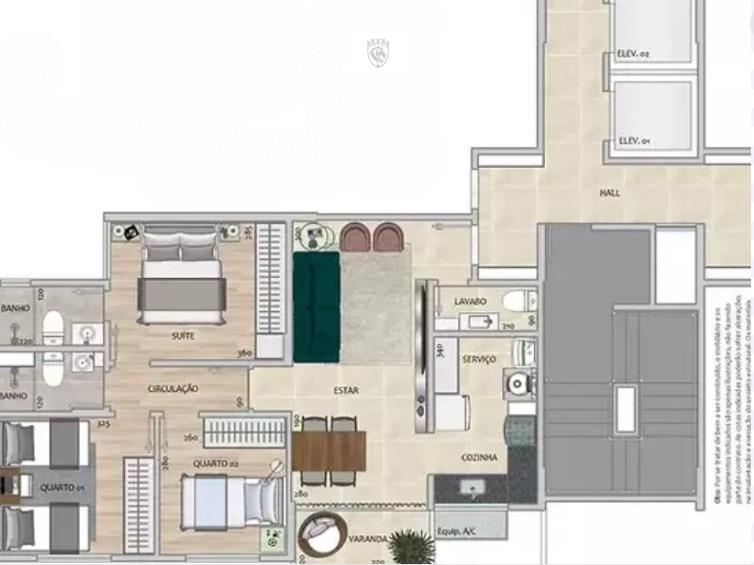 Sala ampla para 02 ambientes com piso em porcelanato, varanda, lavabo, 03 quartos confortáveis com armários e piso em vinílico sendo 01 suíte, banheiro social, cozinha espaçosa e planejada com bancadas em granito e área de lavanderia independente com armário e piso em porcelanato.