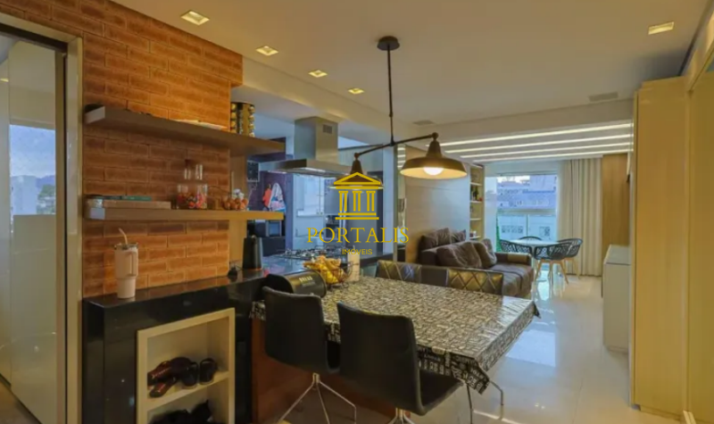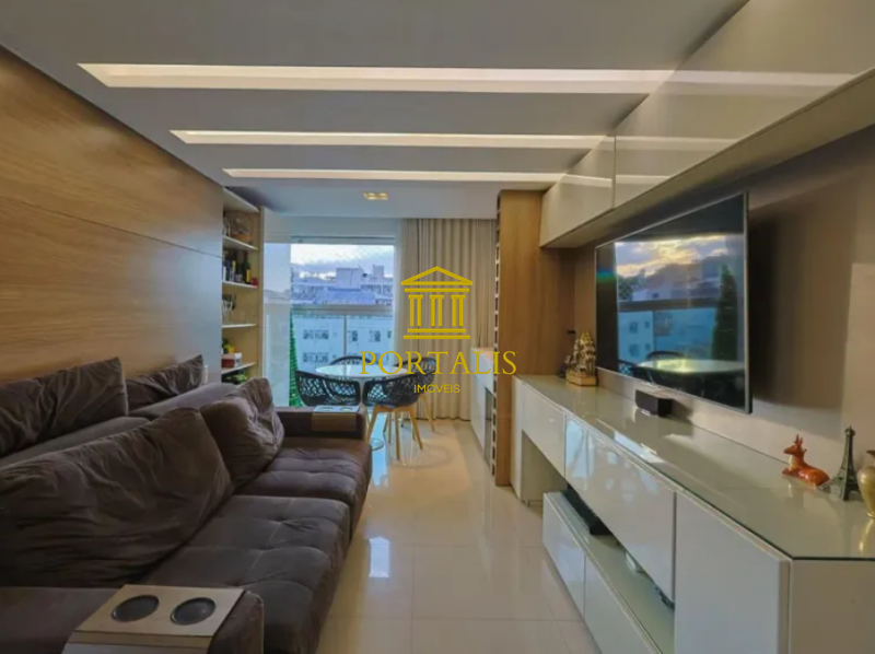 * Sala para 2 ambientes com armários, piso em porcelanato, teto rebaixado e iluminação decorativa;